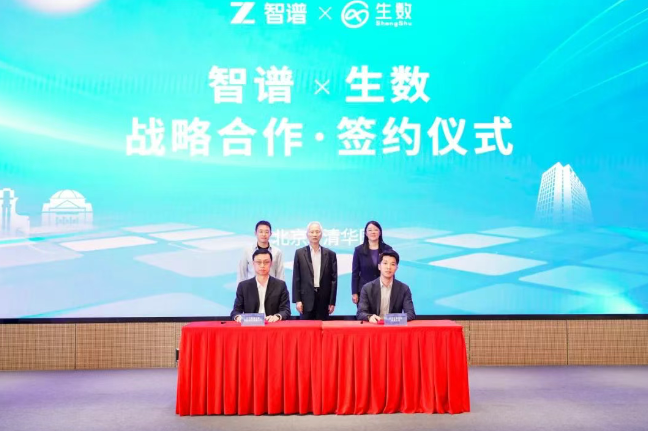 仪式期间,张钹院士和贾珈共同主持见证了计算机系系友AI创新创业企业的战略合作。生数科技CEO骆怡航与智谱华章CEO张鹏代表两家企业签署“智谱华章×生数科技”战略合作协议,整合双方在基座大模型和多模态生成方面的能力与优势,助力计算机系与系友创新创业企业的产学研协同创新发展迈入全新阶段。